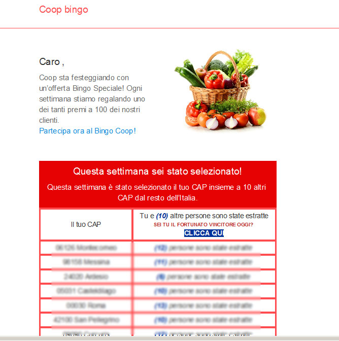 Sta circolando una iniziativa falsamente attribuita a Coop. Teniamo a precisare che Coop NON è in alcun modo promotrice e non è coinvolta in questa iniziativa. Invitiamo pertanto tutti i nostri clienti e soci a non aderire.